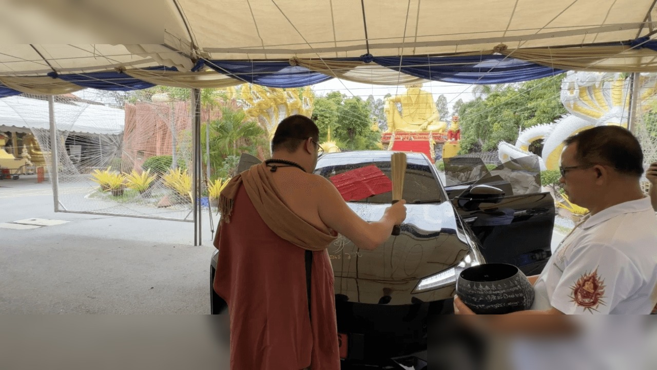 ลุ้นเลขเด็ด! นักธุรกิจจีนนำรถป้ายแดงมาขอพรอาศรมฤาษีเณร