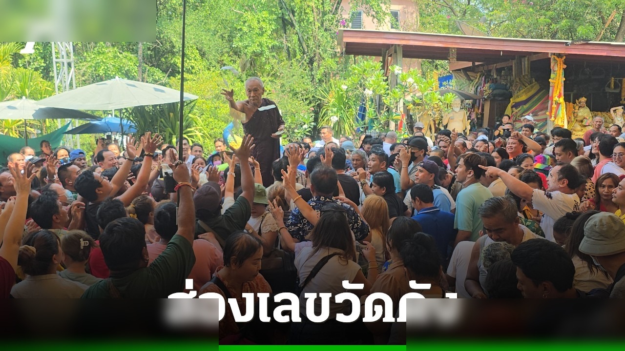 คอหวยแห่ส่องเลขเด็ด หลวงพ่อแป๊ะ วัดสว่างอารมณ์ จีวรบินแจกธนบัตรรับโชค