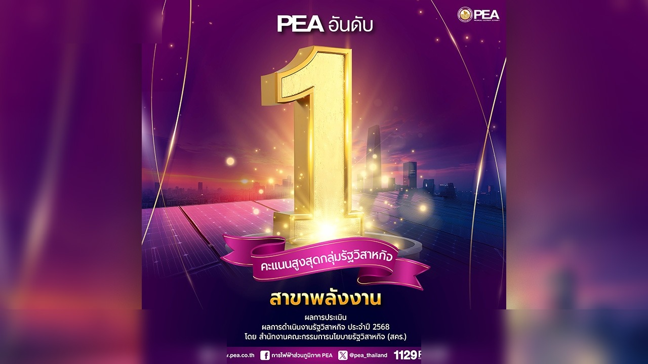 PEA คว้าอันดับ 1 รัฐวิสาหกิจสาขาพลังงาน ผลงานปี 2568 โดดเด่น