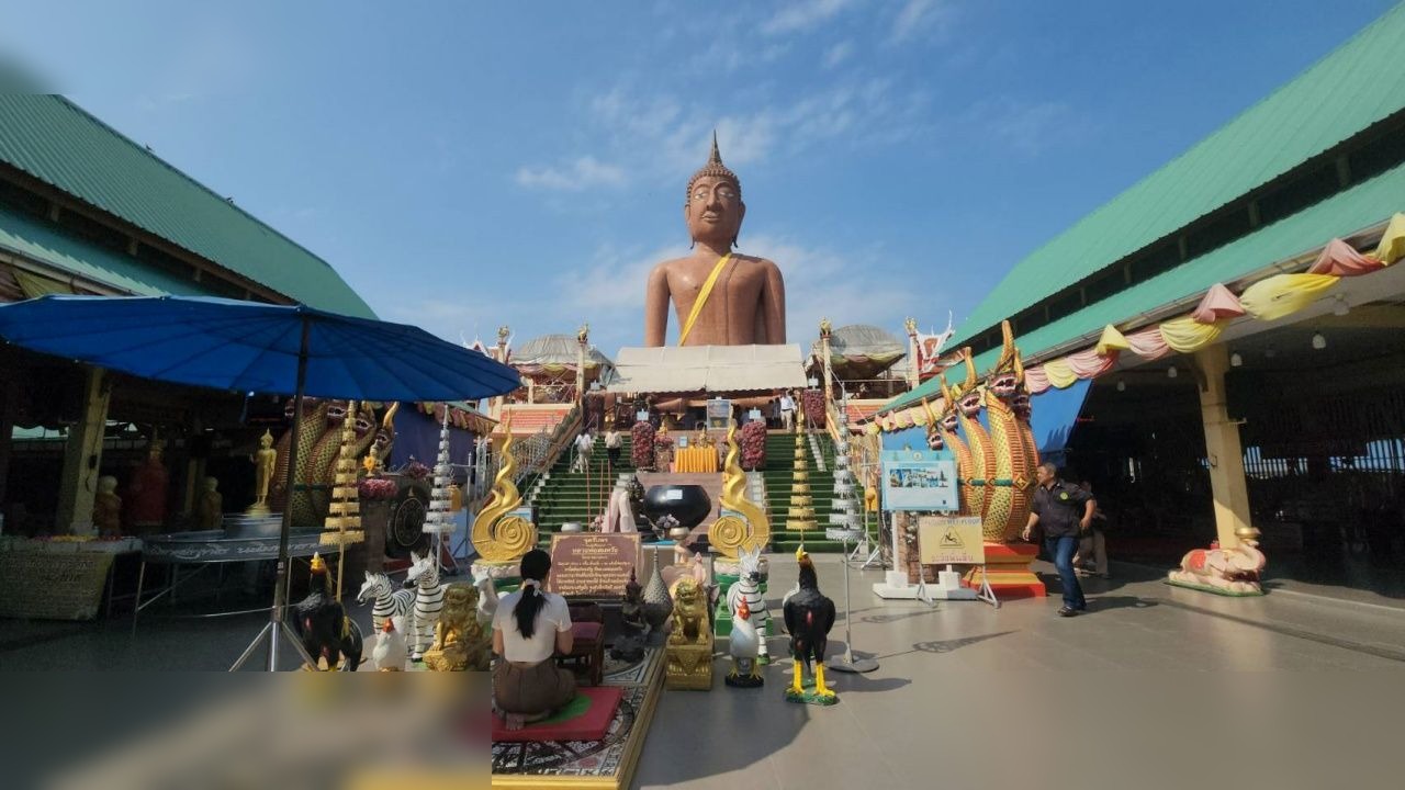 พนักงานทัวร์พาท่องเที่ยวทำบุญวัดหลวงพ่อสมหวัง ขอเลขเด็ดท้าวเวสสุวรรณ ลุ้นโชคงวด 2/4/69