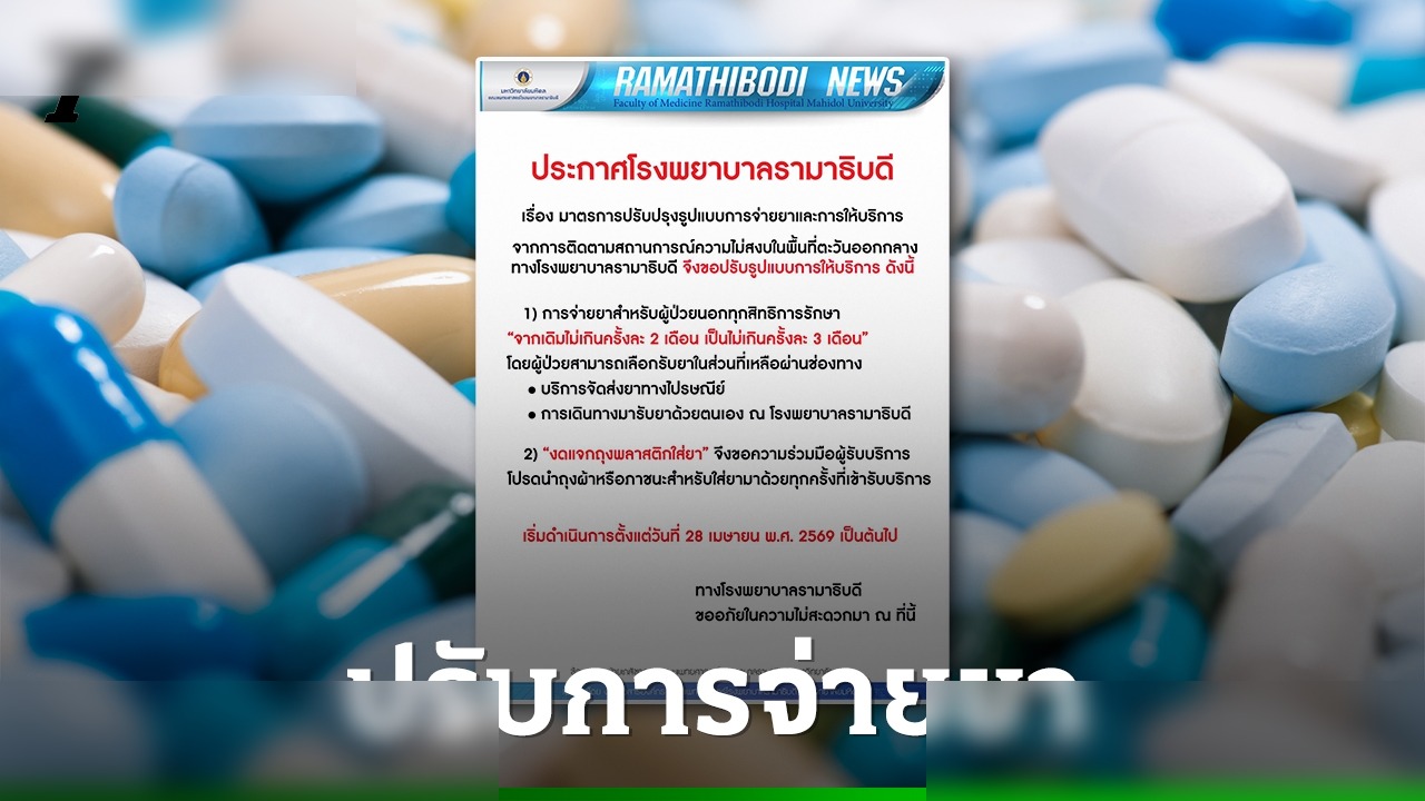 โรงพยาบาลรามาธิบดีได้ประกาศการปรับเปลี่ยนระเบียบการจ่ายยาสำหรับผู้ป่วยนอก ซึ่งเป็นการเปลี่ยนแปลงนโยบายที่ส่งผลกระทบโดยตรงต่อประชาชนผู้ใช้บริการในสิทธิการรักษาต่างๆ การปรับเกณฑ์นี้เกิดขึ้นจากความพยายามในการยกระดับบริการสาธารณสุขให้มีความสะดวกและรวดเร็วขึ้น โดยไม่กระทบต่อความถูกต้องทางการแพทย์