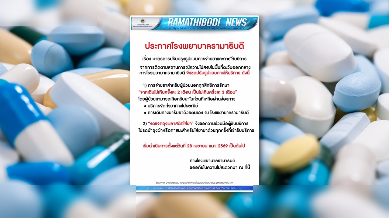 รพ.รามาธิบดี ปรับเกณฑ์จ่ายยาผู้ป่วยนอก ครั้งละสูงสุด 3 เดือน