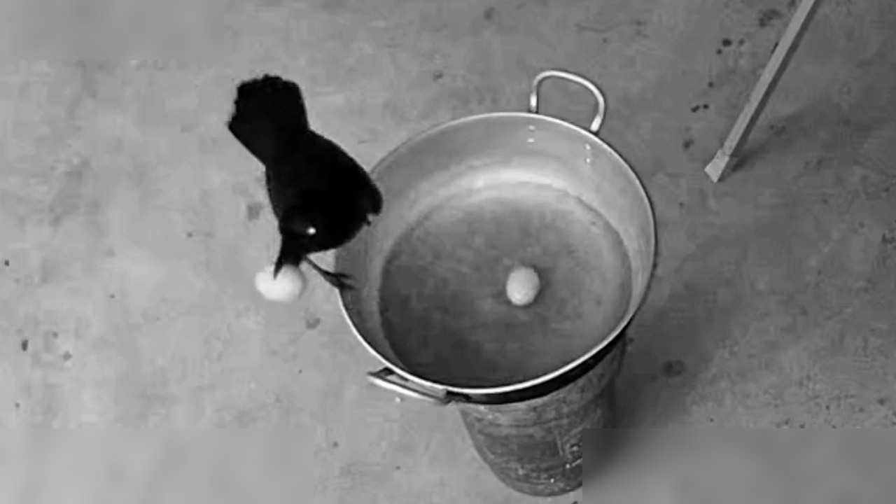 หลังจากติดตั้งกล้องวงจรปิดเรียบร้อยแล้ว ภาพจากกล้องก็บันทึกเหตุการณ์ที่เกิดขึ้นได้ชัดเจน เมื่อมีสิ่งมีชีวิตบินเข้ามาใกล้จุดวางไข่ต้ม ซึ่งไม่ใช่คนอย่างที่ทุกคนคาดคิด แต่เป็นนกกางเขนหรือกาตัวหนึ่งที่อยู่บริเวณใกล้เคียงบ้าน กล้องวงจรปิดสามารถบันทึกภาพความเคลื่อนไหวของนกตัวดังกล่าวได้ชัดเจน โดยมันบินลงมาต้อนไข่ต้มออกจากหม้อย่างว่องไว ทำให้เจ้าของบ้านที่เฝ้ามองภาพจากกล้องเกิดความอึ้งและไม่อาจเชื่อสายตาว่าความผิดนี้ไม่ได้กระทำโดยมนุษย์